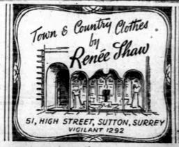 In 1941 Renee Shaw opened at 51 High Street, Sutton. There is little evidence of the business until 1946 however, when a series of advertisements were placed in local newspapers. One is shared below- I always imagined that the woman depicted in this advertisement was meant to be Irene.
