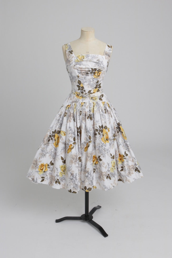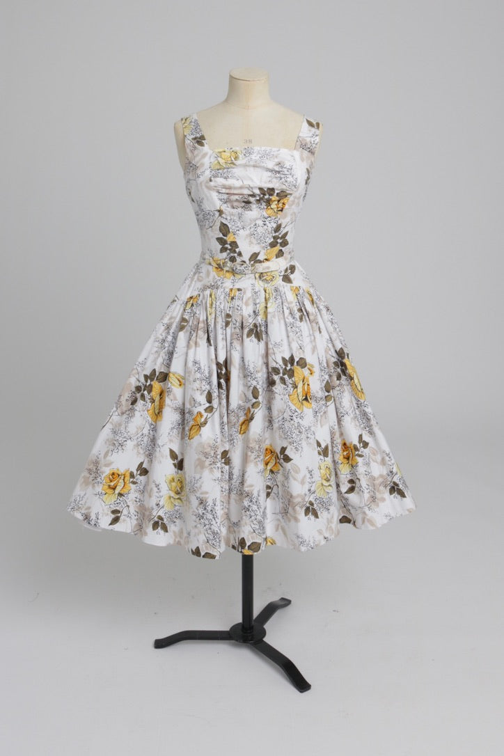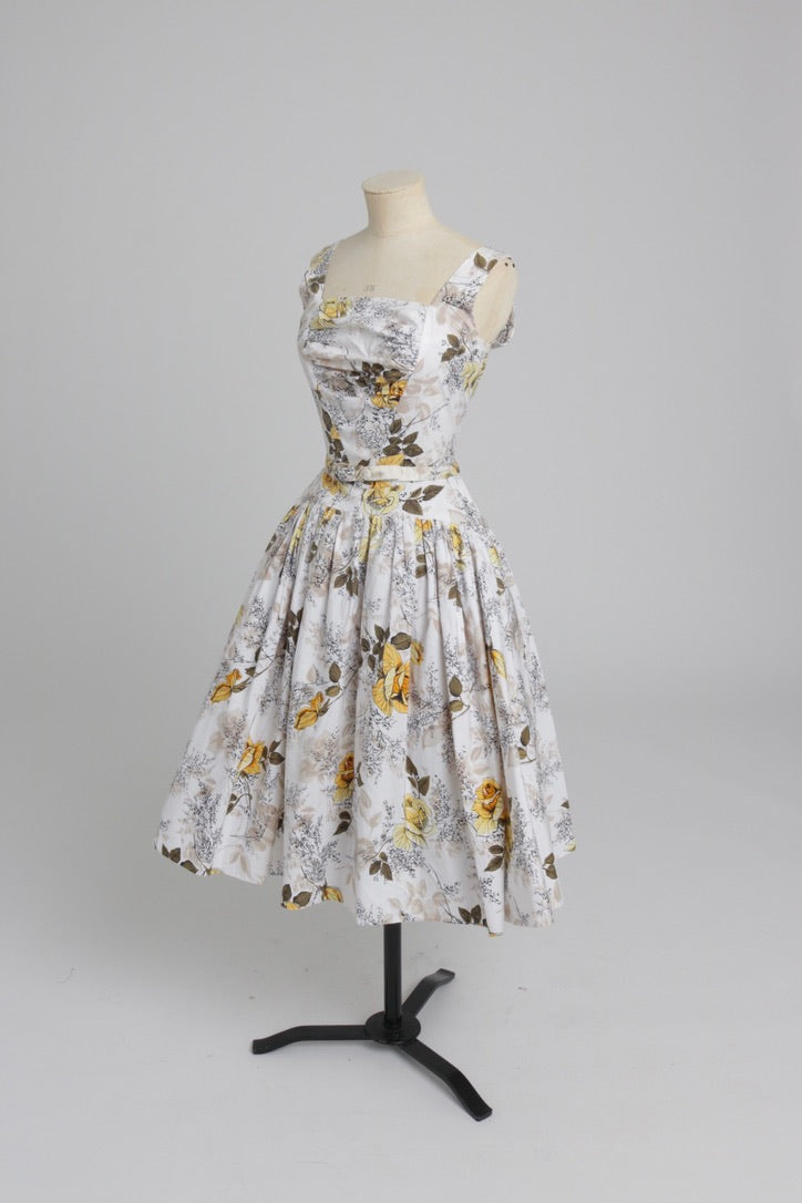 Vintage 1950s original floral rose print cotton Horrockses Fashions dress UK 6 8 XS S
